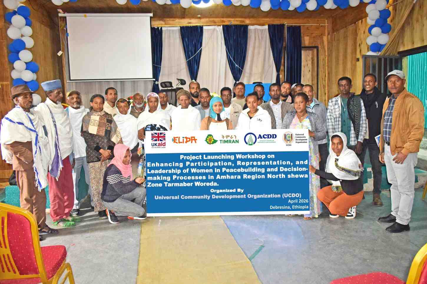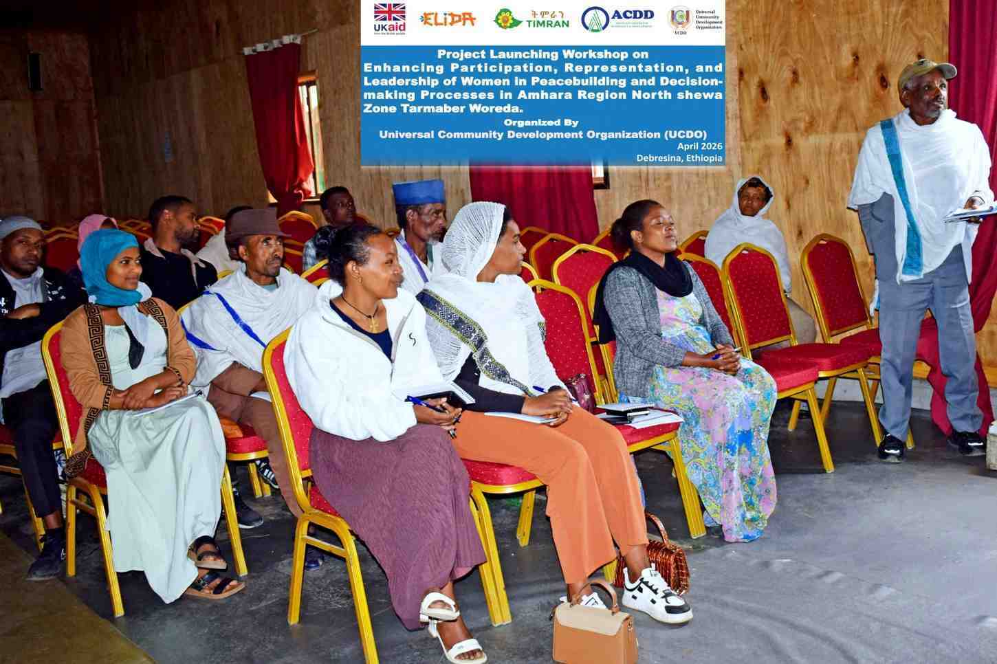 | With financial support from the Foreign, Commonwealth & Development Office (FCDO) of the United Kingdom, and under the strategic leadership of TIMRAN in the Amhara Region, the Universal Community Development Organization (UCDO) successfully conducted the launch and sensitization workshop of its project titled “Enhancing Participation, Representation and Leadership of Women in Peacebuilding and Decision-Making Processes” on April 4, 2026, in Debresina Town, Tarmaber Woreda.\\r\\nThis initiative is part of the broader “Women Count for Peace” program implemented through a consortium of national partners, including Empathy for Life Integrated Development Association (ELiDA) a women-led, rights-based civil society organization and the Advocacy Center for Democracy and Development (ACDD). Within this consortium, TIMRAN leads implementation in the Amhara Region, while ELiDA and ACDD coordinate interventions in Tigray and Oromia regions, respectively.\\r\\nThe launch workshop, held at the Andinet Meeting Hall of the Woreda Agriculture Office, brought together a diverse group of stakeholders, including woreda sector office heads and experts (Administration, WCSA, Finance, Agriculture, Health, Education, Peace and Security, Youth and Sport), as well as representatives of women’s associations, community-based organizations (CBOs), youth groups, religious leaders, elders, and persons with disabilities from Debre Meaza, Armania, and Dokakit kebeles.\\r\\nThe program was officially opened by the Tarmaber Woreda Administration Office and facilitated through engaging and inclusive discussions led by Mrs. Sisay W/Medhen (Head of the Woreda Finance Office) and Mrs. Rediet Taye (Head of the Woreda Women, Children and Social Affairs Office). UCDO presented the project objectives, key activities, and implementation approaches, followed by active participant reflections, questions, and clarifications.\\r\\nThe discussions were highly constructive and resulted in a strong shared commitment among stakeholders to work collaboratively, ensure inclusive beneficiary targeting, and strengthen coordination, monitoring, and accountability throughout the project lifecycle.\\r\\nThe workshop was officially closed by the Woreda Administrator, Mr. Samuel Mersha, who emphasized the importance of timely and coordinated action, effective stakeholder engagement from woreda to kebele level, and scaling up best practices to maximize impact for women, youth, and vulnerable groups.\\r\\nThis successful launch marks a significant step toward advancing women’s meaningful participation and leadership in peacebuilding and decision-making, while strengthening inclusive governance and sustainable peace at the community level.\\r\\nUCDO extends its sincere appreciation to FCDO, ELiDA, TIMRAN, ACDD, government partners, and community stakeholders for their strong collaboration and commitment to achieving impactful and lasting results.\\r\\n |